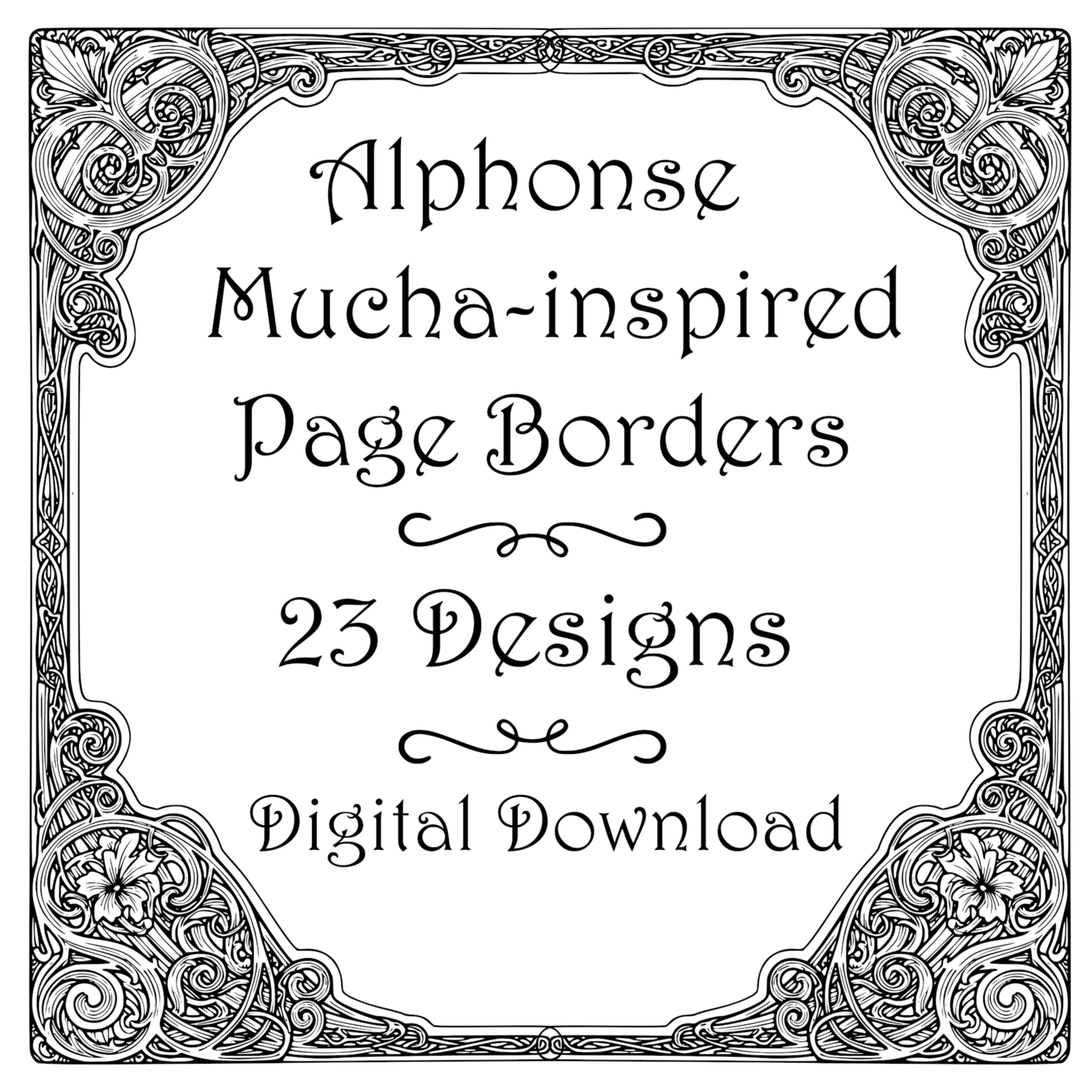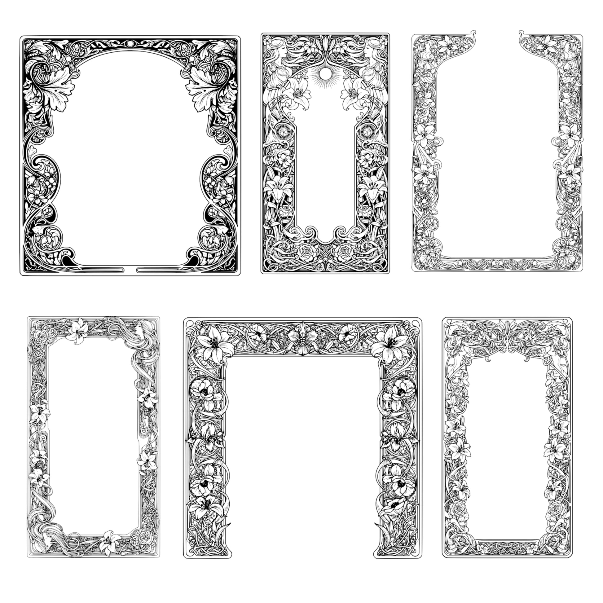 Alphonse Mucha-inspired Border Frames - Vintage Clipart, SVG, PNG (Digital Download)