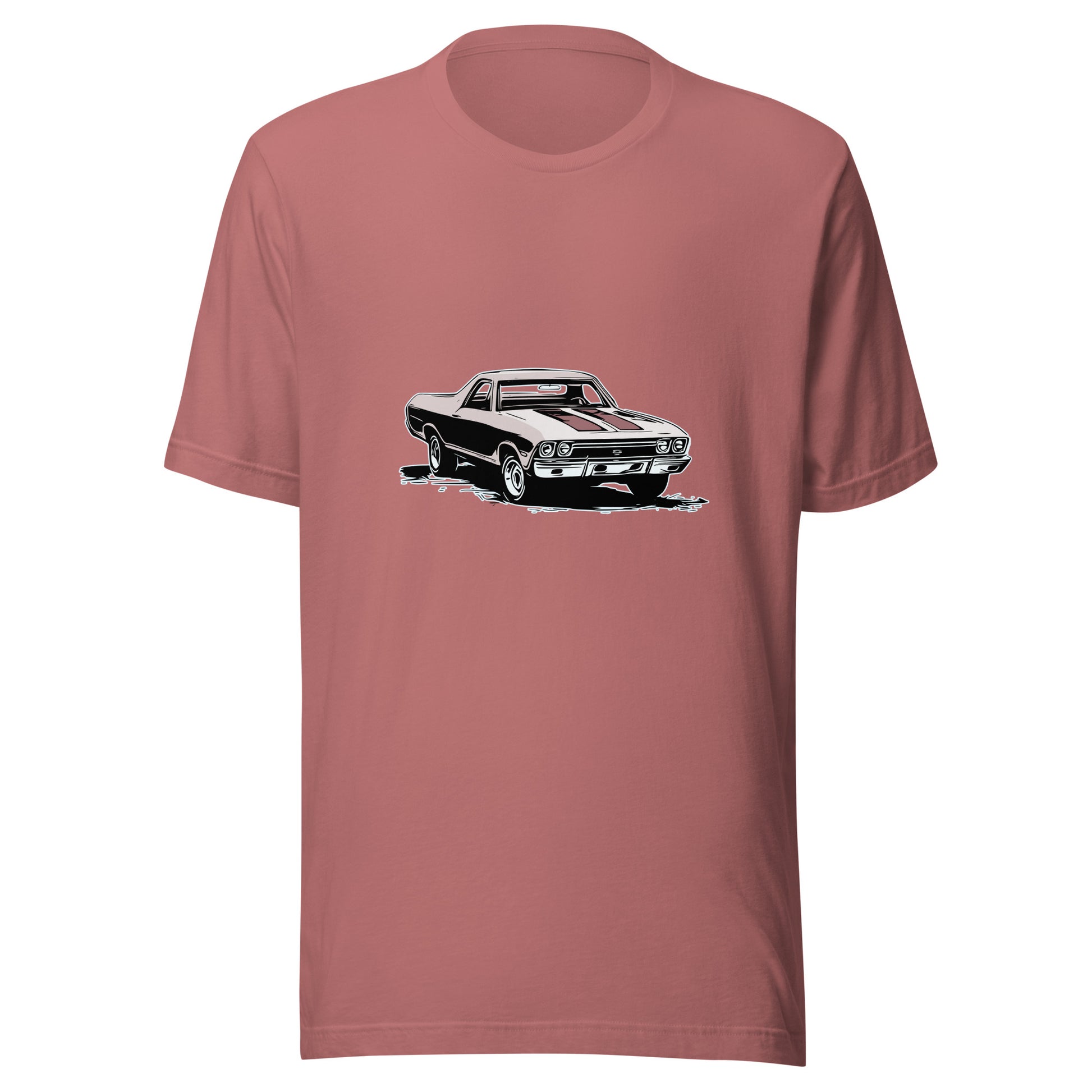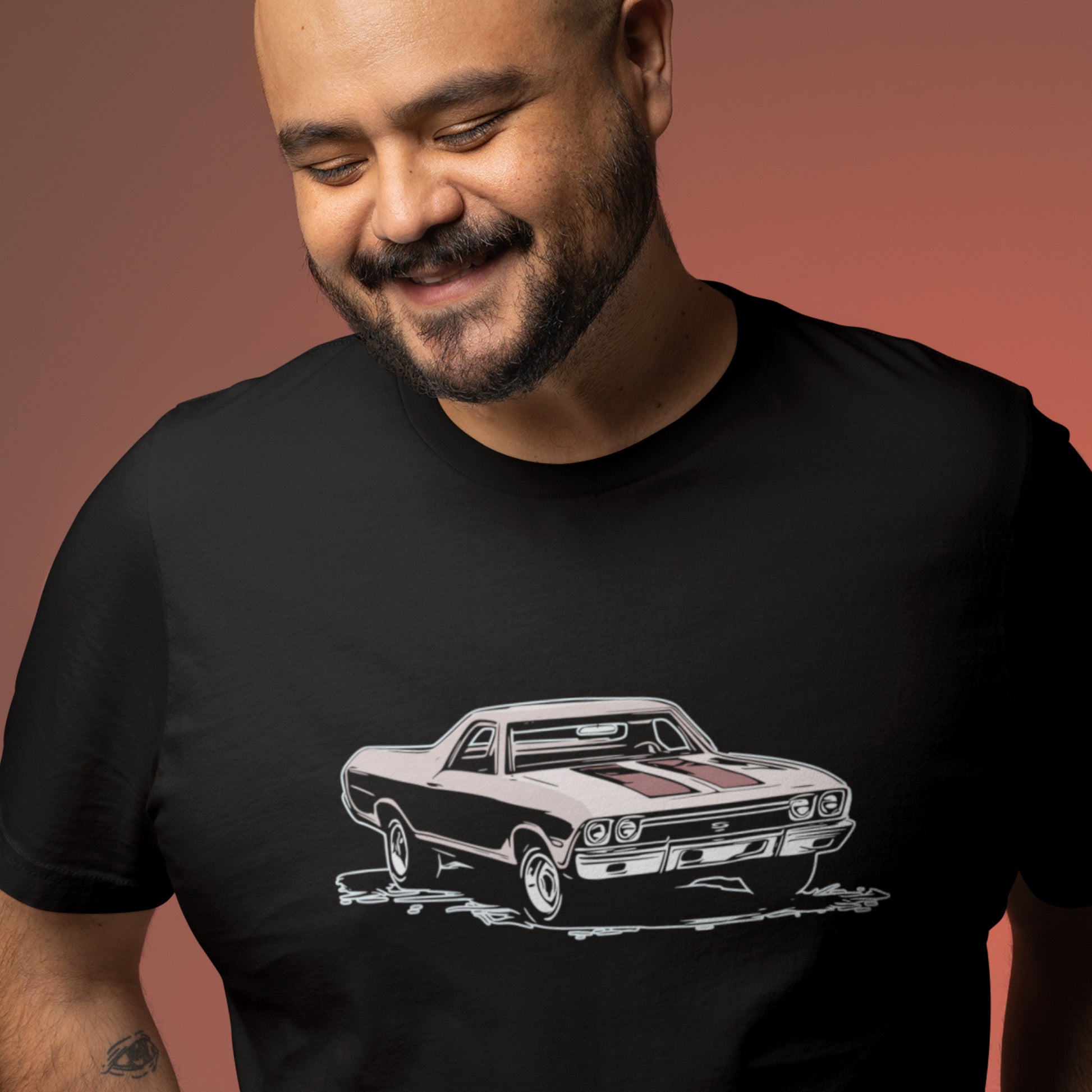 A 1968 Chevy El Camino presented on a Unisex Jersey Tee.