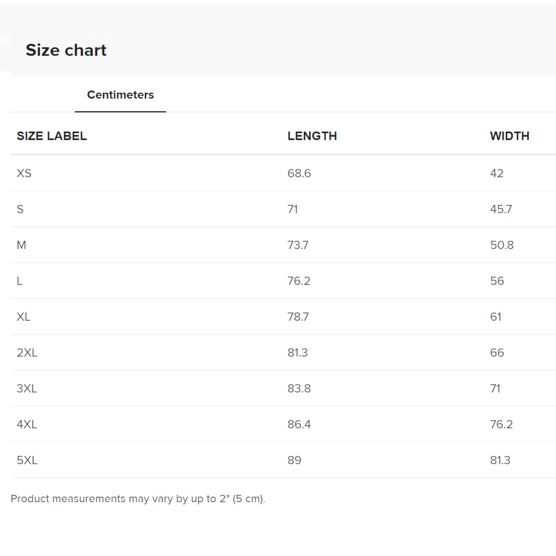 | LENGTH (cm) | WIDTH (cm) | CHEST (cm) | |